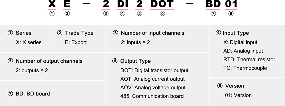 | 2 | XE-4AI-BDO1 | 4AI, 15bit akım tipi | analog akım girişleri ×4 |