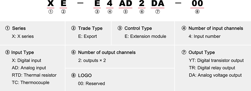 | 3 | X-E8AD-00 | X serisi evrensel analog giriş genişletme modülü, 8AI, 16 bit |