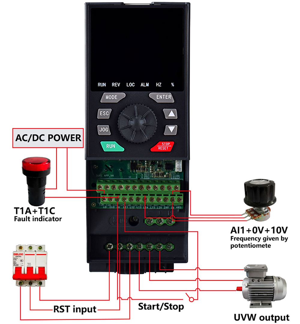 | Frekans ayar sinyali | Entegre operasyon paneli | Membran anahtarı (düğme), hız düğmesi (potansiyometre) |