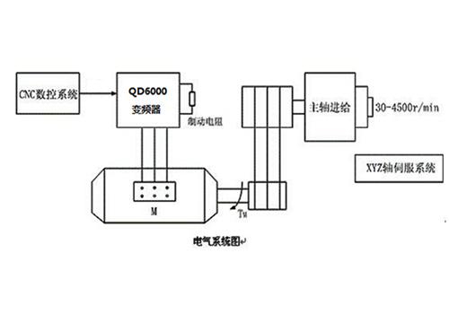 | 04 System Introduction: Bu sistemde 4KW CNC takım tezgahı mili, RVE32 5.5KW invertör tarafından tahrik edilmekte olup, hızlı frenleme ve durma, harici frenleme ünitesi ve frenleme direnci aracılığıyla gerçekleştirilmektedir. Yük değişiminin neden olduğu hız değişimi, açık çevrim vektör kontrolü sayesinde çok küçüktür. | | ||||||||||||||||||